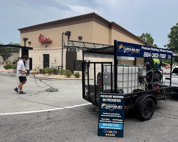 When searching for the best commercial pressure washing company, restaurant owners and managers need more than just surface cleaning—they need a team that understands sanitation standards, grease removal, and the importance of maintaining a clean environment for both customers and staff. Carolina Sky Softwash has built a strong reputation throughout the Triangle for dependable service, fast response times, and results that meet the demands of the food service industry.